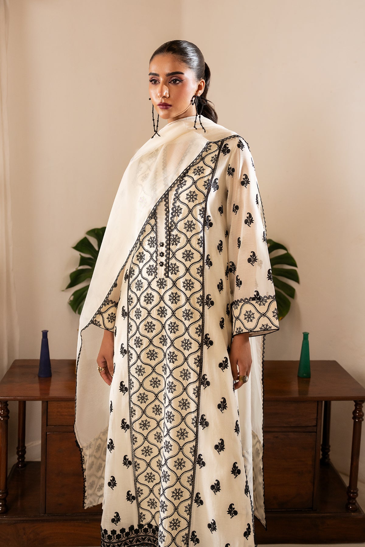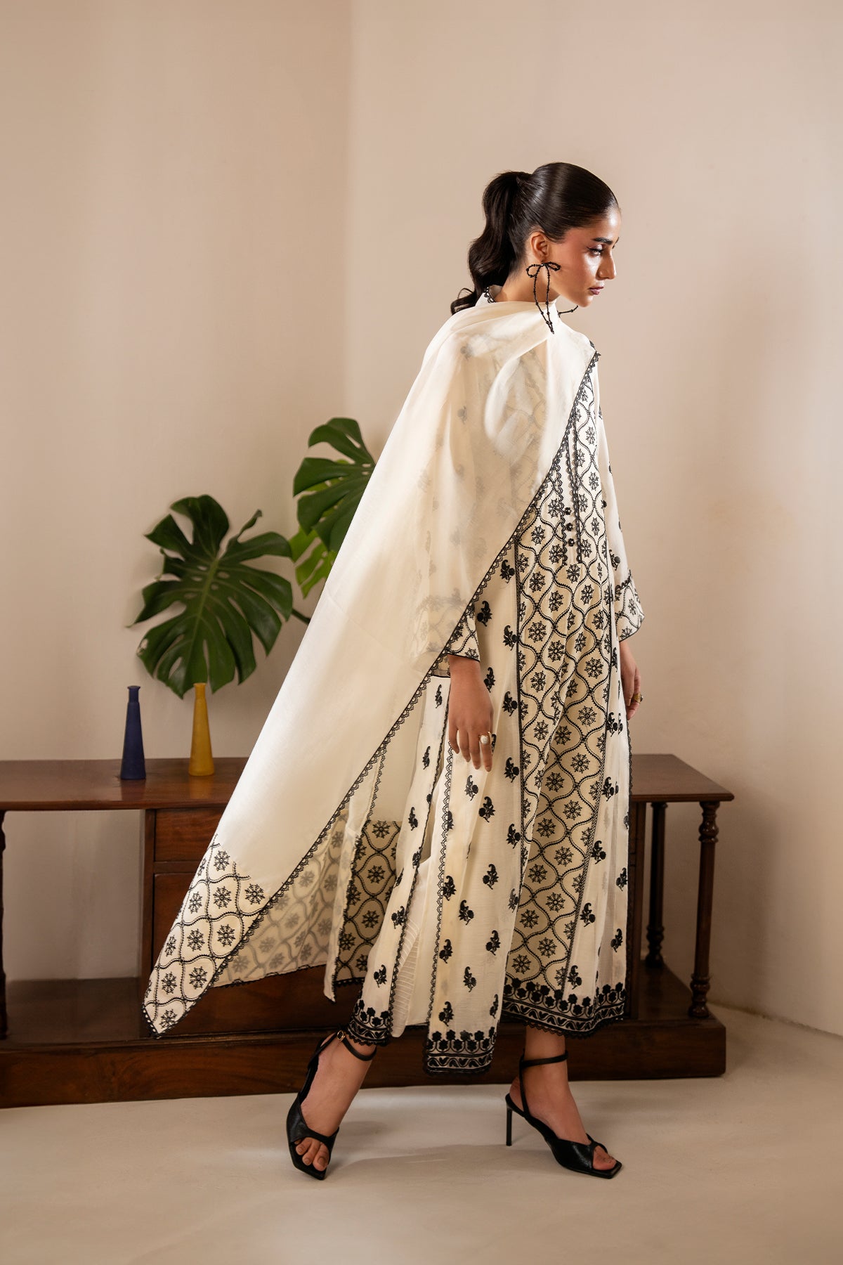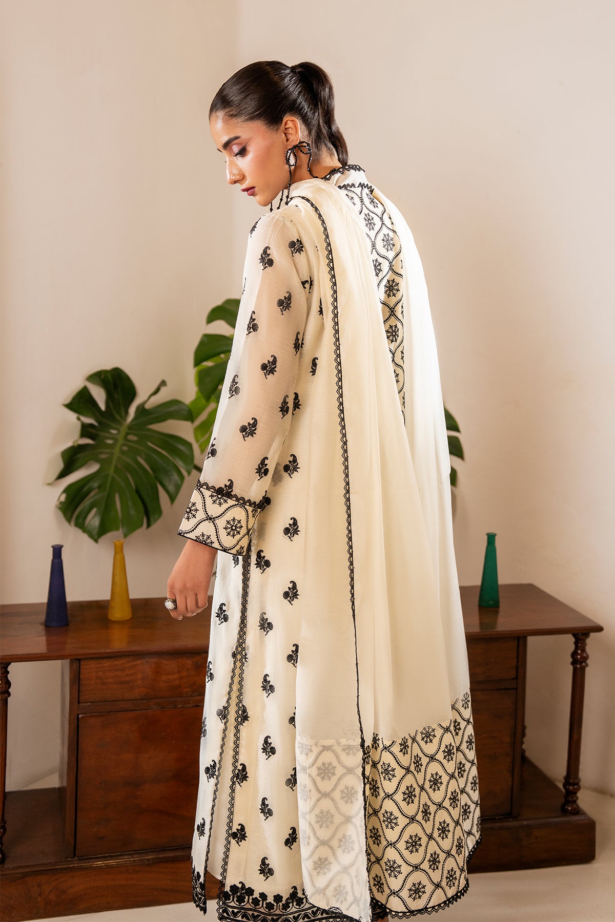 Black and white is always a classic. Laani is a sophisticated black embroided kurta with delicate hand made buttons along its neckline. Paired with straight