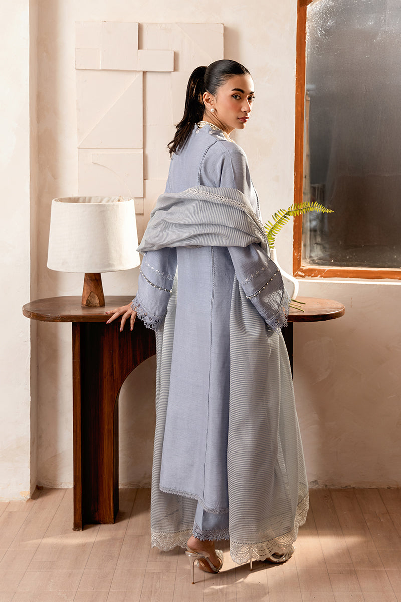 Embrace timeless sophistication with Reem, a stunning Korean silk blue outfit. The long shirt features intricate embroidery on the neckline and sleeves, complemented by delicate lace detailing and graceful pleating. Perfect for special occasions, Reem exudes charm and elegance with every detail.