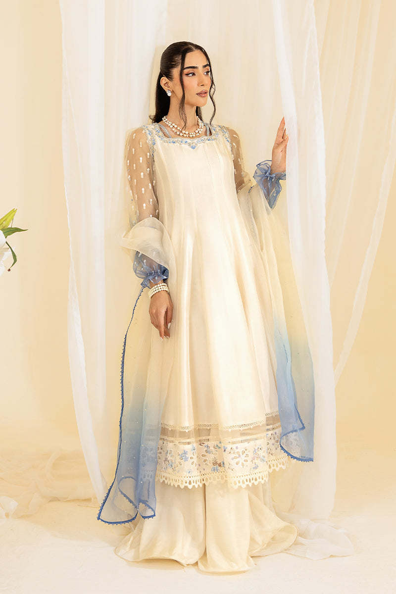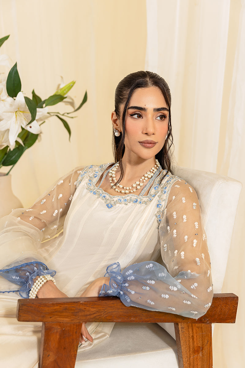 Get your princess vibes with charlotte. A beautiful A-line dress with stylish Ombre balloon sleeves. Delicate work around the neckline and the back neckline of the shirt. This outfit is perfect for a festive night out. paired with a shararh and a Ombre dupatta this outfit is a must have,